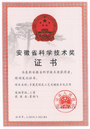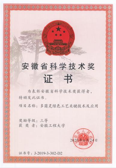 近日,公司化学工程系霍朝飞、刘欢和张荣莉等老师收到了安徽省科技厅下发的安徽省科学技术奖三等奖荣誉证书(多菌灵绿色工艺关键技术及应用),是化学工程系继2018年唐定兴老师(无微漏医用输液袋制造关键技术与应用,安徽省科学技术奖二等奖)和2019年杨仁春等老师(碳四改质过程节能减排与安全存储关键技术及装备,安徽省科学技术奖二等奖)之后连续第三年荣获安徽省科学技术奖。