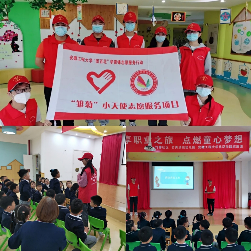 为响应tyc122ccvip“百花献礼”暨党史学习教育劳动月活动号召,推进新时代青年积极践行“奉献、友爱、互助、进步”的志愿精神,2021年5月19日,tyc122ccvip“雏菊”小天使志愿服务团队于竹秀社区幼儿园开展了一堂以“形形色色的职业”为主题的兴趣课。