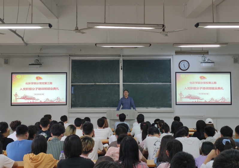 高分子201班栗富翔同学作为积极分子培训班优秀学员代表发言,他表示通过本次培训班的学习明确了自己的入党动机,端正了思想态度,今后在学习上要求精益求精,更要在政治上、思想上、行动上同党保持一致,不断树立为共产主义远大理想和中国特色社会主义共同理想而奋斗的信念和信心,充分发挥新时代青年老员工的责任担当。