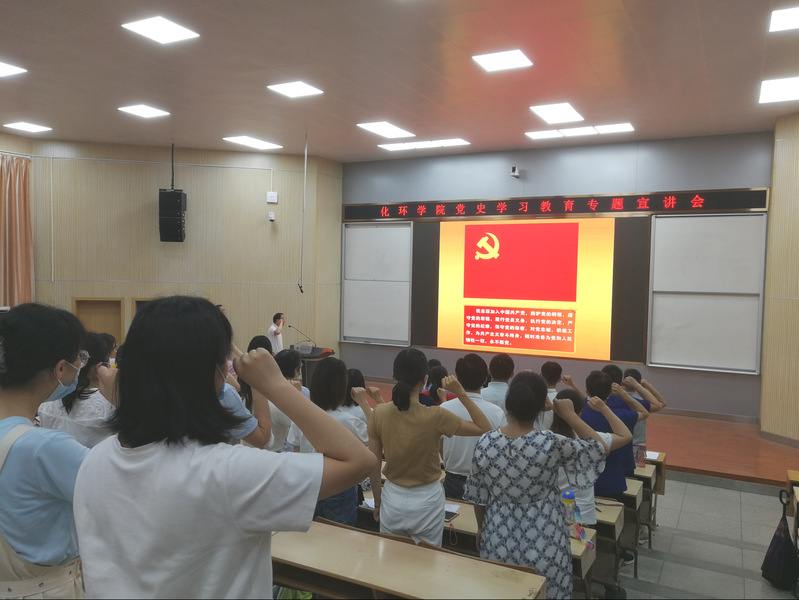 6月23日下午,在庆祝建党一百周年之际,化学与环境工程公司党委在2J报告厅举行庄严隆重的新党员入党宣誓和老党员重温入党誓词仪式,公司全体师生党员参加了宣誓仪式。宣誓仪式由公司党委委员、副经理高建纲主持。