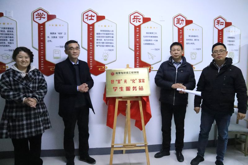 启动仪式上,黄炜、章兵、李恒奎、王燕共同为“室”光 “化”家常员工服务站揭牌。