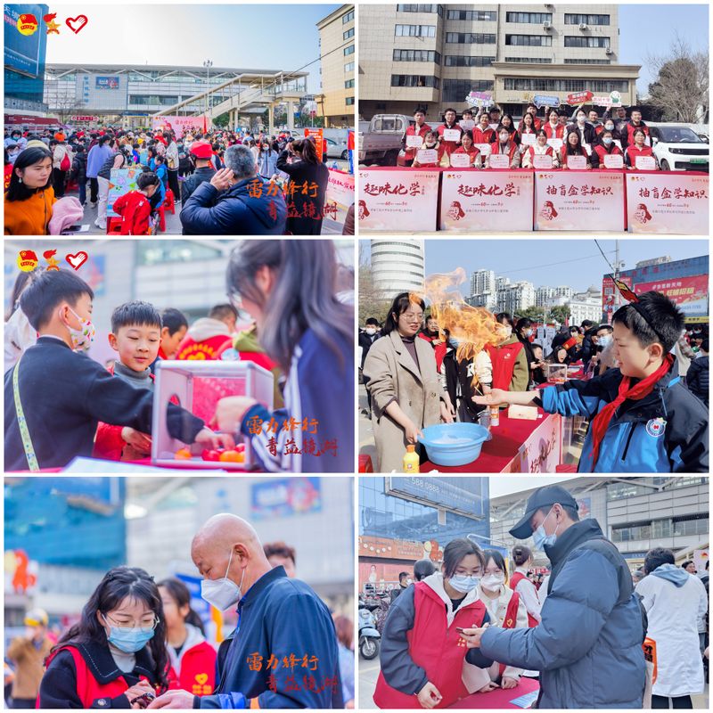 仪式结束后,“红领金”功能型党支部成员在大润发华亿广场开展“智慧助老”、“趣味化学小实验”、“抽盲盒 学知识”志愿服务活动。活动现场,志愿者们以“一对一”“面对面”“手把手”的形式,详细地教老年人使用智能手机,暖心地为小朋友普及化学知识,耐心地演示“手中火”化学实验并对原理进行讲解。活动现场吸引了众多群众前来体验,大家身着“志愿红”,践行“党员红”,用实际行动传递出学雷锋精神正能量,青年志愿者良好的精神风貌、热忱的服务态度受到广大群众的点赞。