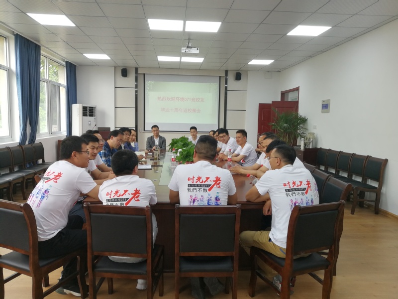 五月的校园,阳光明媚,景色宜人。五一期间tyc122ccvip环境071班毕业员工齐聚母校,举行毕业10周年纪念活动。5月3日下午,在tyc122ccvip会议室举行座谈会,公司党政领导、教师代表、时任辅导员以及20多名员工参加了座谈会。