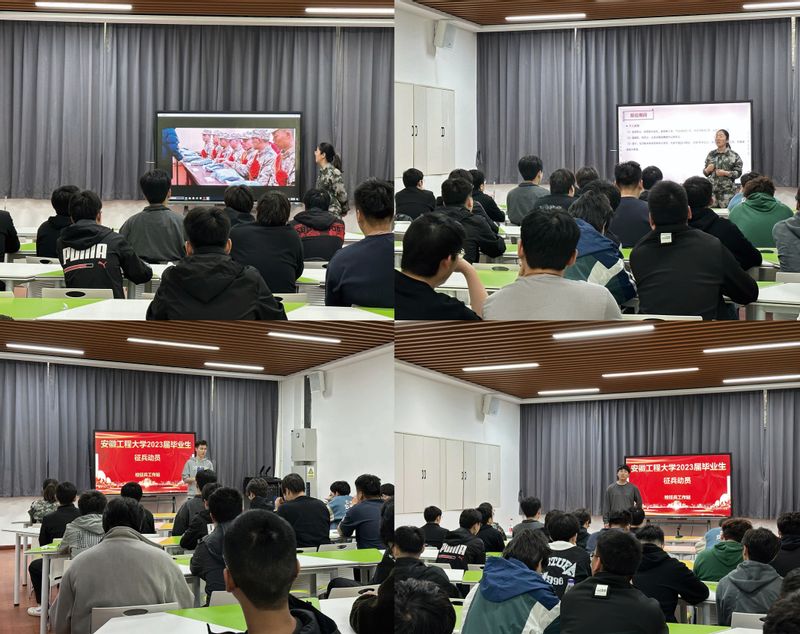 会议伊始,毕业班辅导员马晨简要介绍了本次征兵推进会的主体内容、出席人员。公司党委书记胡承功以家国情怀、青年的使命担当为精神主线,对毕业生进行了动员,他引导毕业生积极响应国家政策号召,以实际行动为国防建设添砖加瓦。校征兵工作站负责人赵成婧老师首先通过视频短片展示了公司2023年春季入伍员工的英姿风采,并全面系统化地为在场毕业生讲解了征兵政策、入伍优待、征兵流程及应征注意事项。公司2023届毕业班退役士兵代表肖大鹏畅谈军旅生涯中身心素质、成长阅历等多方收获。退役军人党员何志文分享了今年通过老员工退役士兵专项报名考取本校研究生的成功经验。两位同学用各自的亲身经历呼吁毕业生及时把握政策优势,建立长远人生规划,积极投身部队生活,挥洒自己的青春热血。