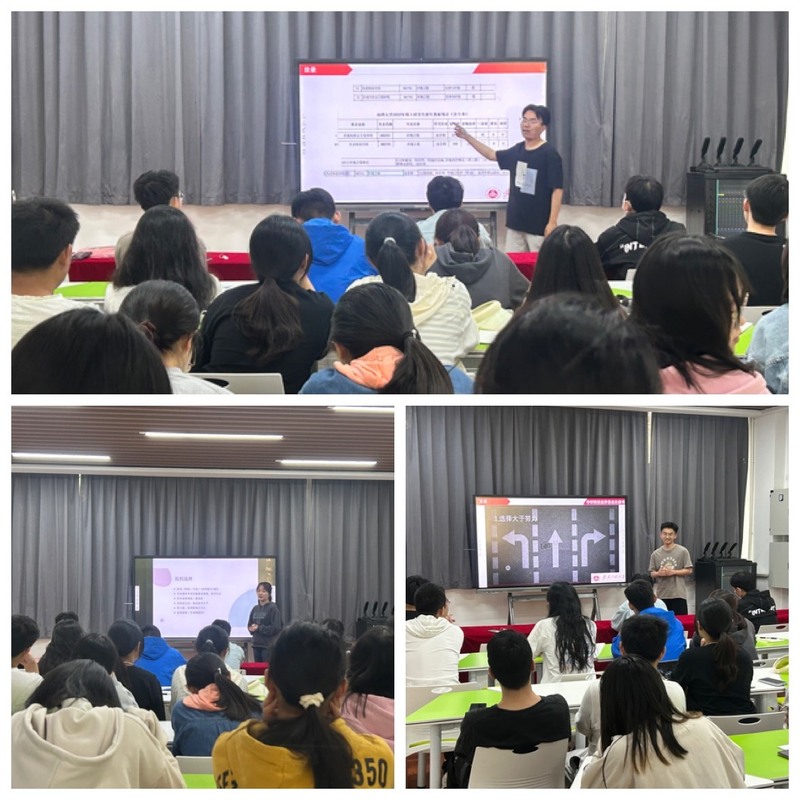 现场互动环节,同学们积极踊跃地提出了备战考研过程中的疑惑,学长学姐一一进行了回答,详细说明了学硕与专硕在考研院校报考方面区别、考研复习资料、院校录取信息收集途径等问题,现场气氛热烈。
