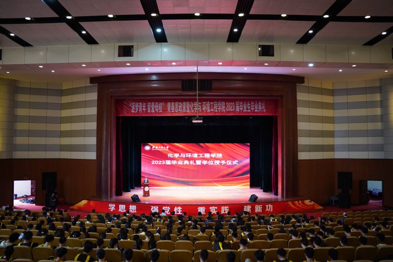 典礼正式开始前,2023届毕业纪念视频循环播放。一桥一湖,承载着无数学子的青葱岁月;一图一景,记录着星移斗转。光影流转,惜别之情萦绕在每一位学子的心田。