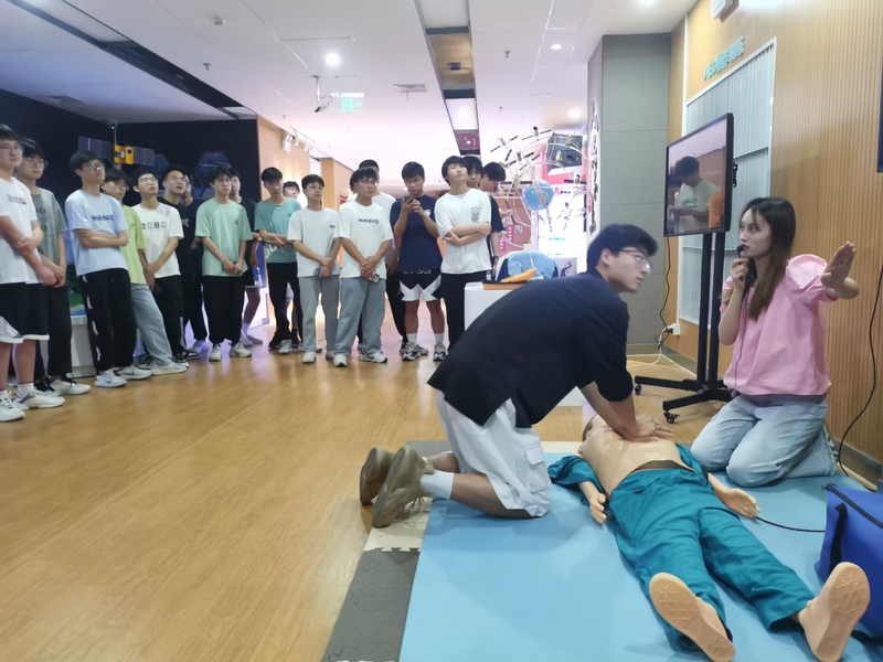讲解员老师首先给同学们讲解心肺复苏救护训练、海姆立克急救等知识,利用模型展示了正确的急救技能和方法,老师一边讲解一边演示,充分激发同学们的学习兴趣和拯救生命的责任意识。