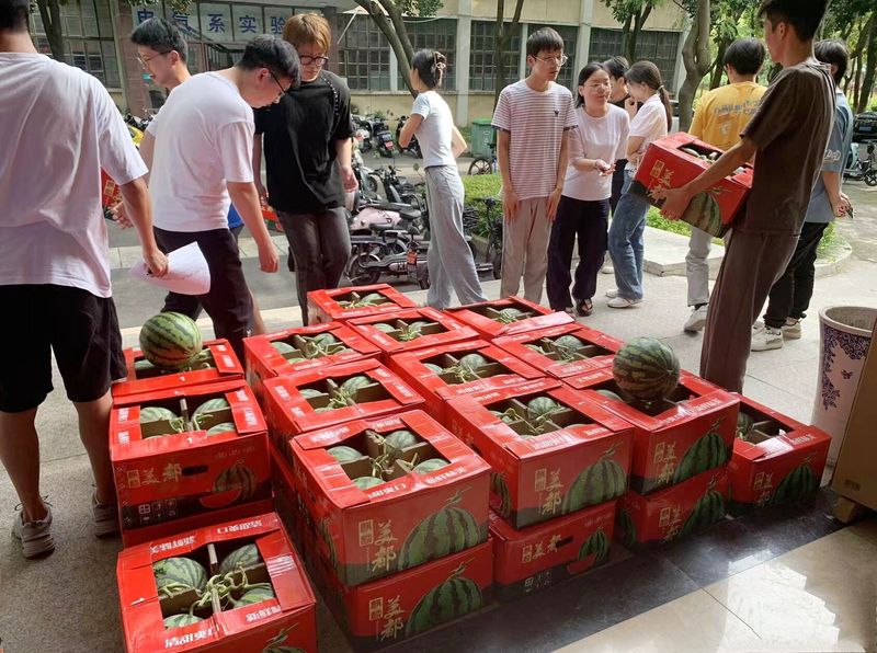 在炎热的夏日里公司为同学们送上清凉与祝福,同学们拿完西瓜后互相交流、彼此鼓励,表示公司的关爱、老师们的祝福是他们的强心针,是最坚实的后盾。