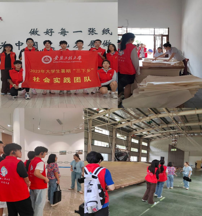 实践团队前往中国宣纸文化园进行参观调研。在这里,同学们了解到了宣纸的品种、品质、历史源来以及其特殊的一百零八道制作工序,也感受到了宣纸画作的精细,保存的完好,并沉醉于作品所缔造的国风意蕴之中。在“三丈三超级宣纸制作工坊”中,志愿者们认真观察“温水浸泡,晾晒,熬汁,漂洗,烘干,修整”的制造工序,领悟到了中共二十大代表、大国工匠、毛胜利先生所说的“晒好每一张宣纸,弘扬工匠精神,为我国文化事业作出自己的贡献”的内涵。