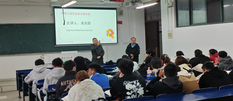为充分发挥优质员工资源,引导新生结合专业特点,充分做好老员工涯规划,推动“三全六专”育人实践走深走实,11月10日,tyc122ccvip举办了2023级员工大讲堂活动。本次活动邀请了公司09级员工、芜湖市环境保护综合行政支队吴光跃来公司开展交流活动。环境工程系主任杨晓凡、2023级新生及部分研究生参与此次活动。