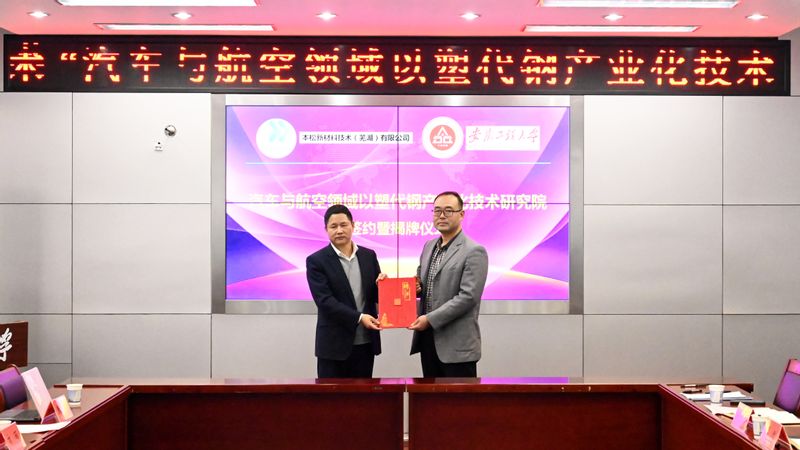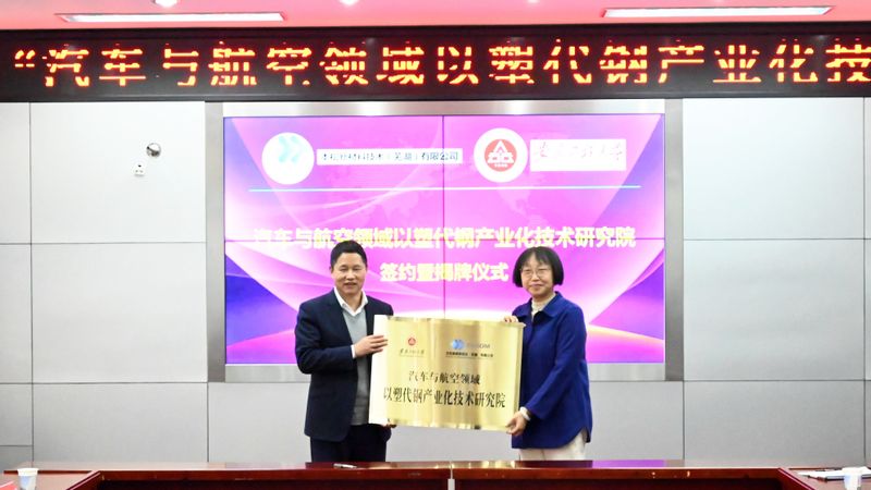 徐大勇、周永松代表双方签署了共建协议。周虹屏和周永松为“汽车与航空领域以塑代钢产业化技术研究院”揭牌,并为tyc122ccvip高建纲教授颁发经理聘书。