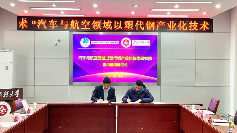 2023年12月4日,公司与本松新材料(芜湖)有限公司共建“汽车与航空领域以塑代钢产业化技术研究院”签约揭牌。副董事长周虹屏和本松新材料(芜湖)有限公司董事长周永松出席活动,校科技处和化学公司相关领导老师以及本松新材料(芜湖)有限公司相关人员共同参加此次活动。