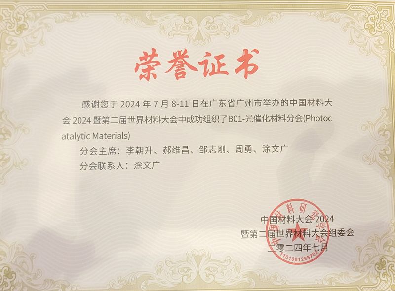 本届中国材料大会积极邀请欧洲、亚洲等国家和地区的专家学者进行合作交流,设置92个热点领域分会场,覆盖到当前新材料研究的各个前沿领域,2.5万余名材料科技工作者和企业代表参加了本次大会。tyc122ccvip周勇教授担任光催化材料分会主席之一,光催化材料分会场汇聚了来自世界各地多位专家学者和行业人士,共同探讨光催化材料在光催化分解水制氢、光电催化分解水制氢、光催化降解污染物、光催化还原CO2、光催化固氮、光催化有机合成以及光催化机理研究等方面的最新研究进展和创新应用。