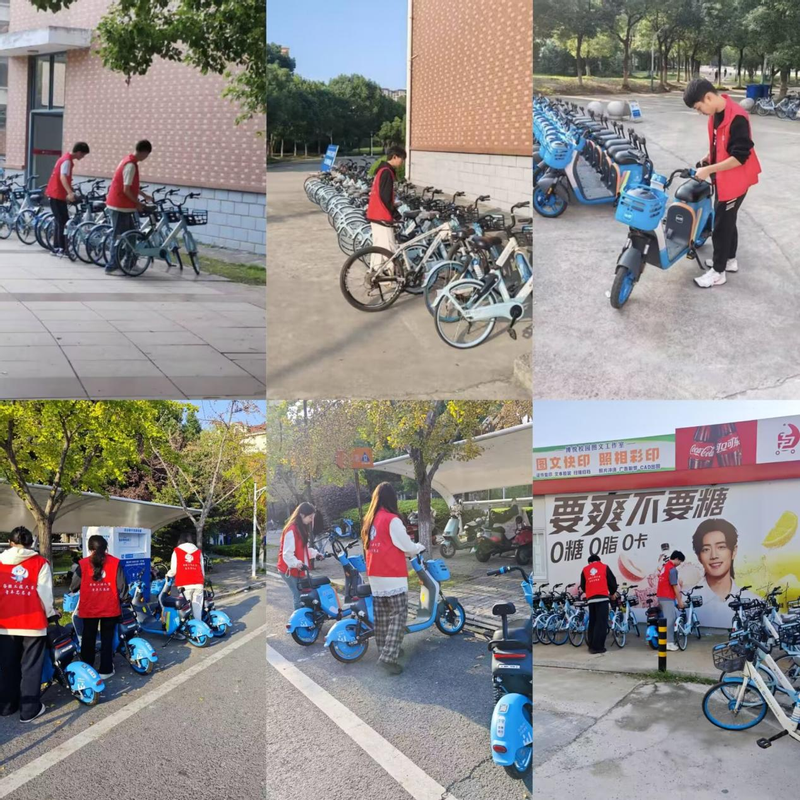 活动第二阶段,项目团队结合前期交通安全知识竞赛开展,于11月中上旬开展了共享单车整理活动。此次活动旨在通过实际行动维护校园单车秩序,美化校园环境。同时,项目负责人进行了细致的统筹策划,在志愿汇平台招募了10余位志愿者,逐一明确活动内容、任务。随后将志愿者分为三组,分配至校园不同区域整理共享单车,服务地点涵盖五、六教,第三、四、五食堂与男生21栋前超市区域。