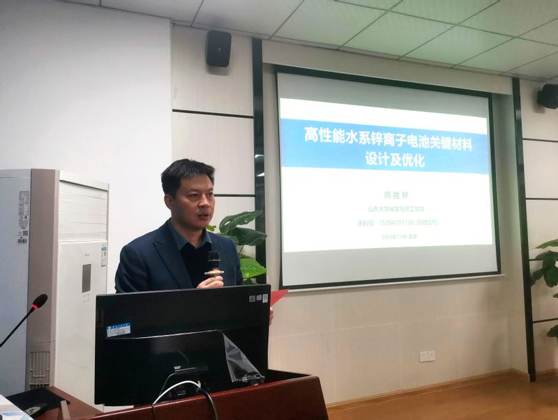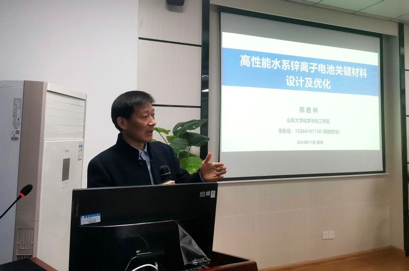 熊胜林教授做了题为“高性能水系锌离子电池关键材料设计及优化”的学术报告,分享了课题组近年来在能量存储与转化为导向的无机介观尺度组装结构的合成方法学、精准制备与电化学性能等方面的研究成果,重点介绍了几类新颖高效的水系锌离子电池储能材料、电解液及有关分子机制。