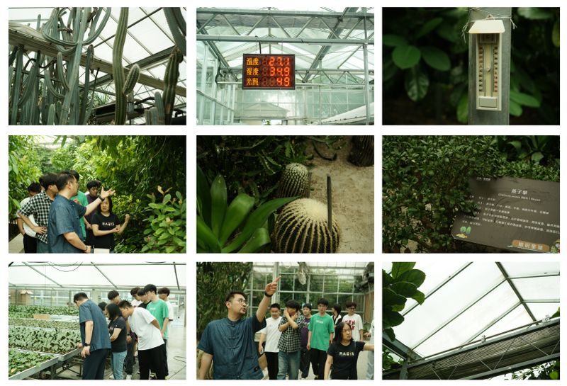 在植物驯化基地的无土栽培温室,针对传统风机通风带来的高能耗与运维压力,师生们现场研讨无动力空气循环技术的应用路径。拟通过热压通风原理优化温室结构,减少机械装置依赖,提升空气流通效率。这种“技术替代能耗”的创新思维,既是对绿色发展的探索,也展现了青年学子将理论转化为生产力的主动作为。
