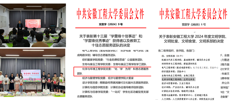 (3)人才培养方面:员工获得省部级及以上竞赛奖励50余项,其中国家级一等奖1项、省部级一等奖5项。获批省级及以上老员工创新创业训练计划项目30余项。本科生参与发表学术论文及发明专利18人次,其中本科生以第一作者身份发表SCI论文3人次。支部以老员工化学实验竞赛为平台,打造公司“一院一品”重点建设项目,在2024年第十三届全国老员工化学实验竞赛中斩获全国一等奖,系安徽省省属高校唯一。并且通过与员工党支部共建、开展考研辅导等活动为毕业生搭建就业渠道,2025年应用化学专业多名本科生考入“双一流”重点院校,员工就业率、考研率稳步提升。此外,应用化学系教师指导的多名2025届硕士毕业生被国内知名院校录取为博士研究生,为博士点申报工作助力。